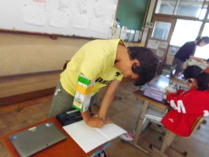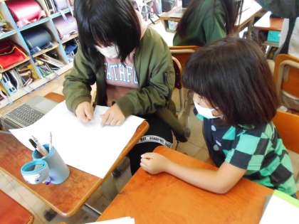 理科では、腕の骨はどういったつくりになっているのかを調べました。腕の骨は3本あり、曲がるところには関節があるということが分かりました。最後には、関節がなかったらどうなるか牛乳パックを関節のところに巻いてみました。