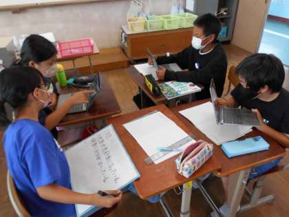 まずは,1枚の写真からグループで気づくことを出し合い,学習問題を作りました。