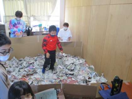 宝さがしは新聞紙の中から、宝物を探し出すゲームをしました。