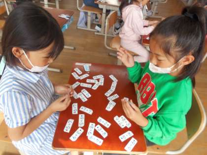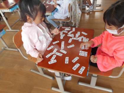 指導者が言った答えになるカードを探したり、どちらのほうが答えが大きいかを答えたりしました。