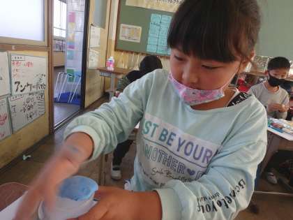 紙粘土に絵の具を混ぜて自分のイメージに合う色を作っていきます!