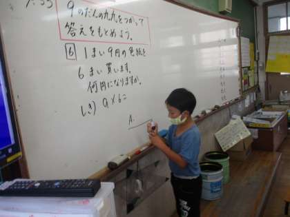 立式する時のかけられる数とかける数の関係についても何故その順番で式に書くのかを考えながら、取り組んでいます。