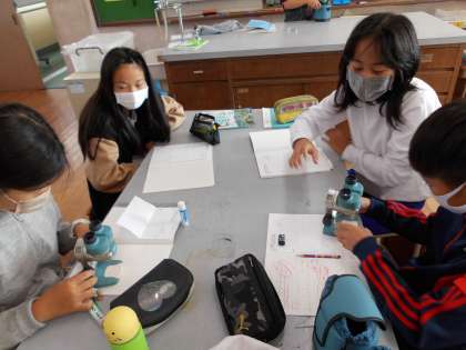 理科の学習で,火山灰を顕微鏡で観察してみました。