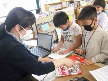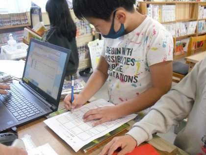 図書館で学習をした後に,自分が借りたい本を借りる時間を設けました。