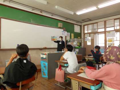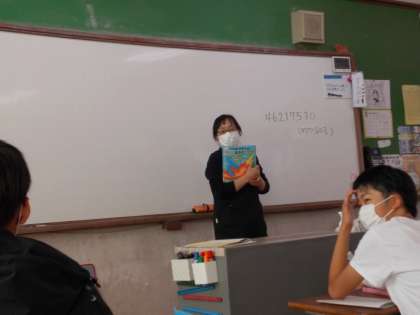 今日は司書教諭の先生おすすめの本を読み聞かせしていただきました。