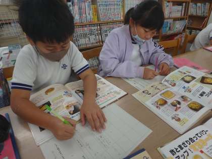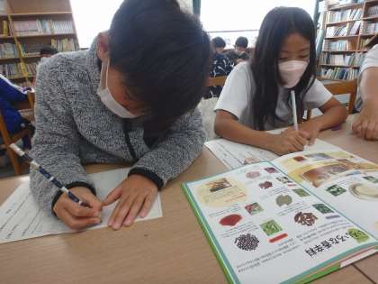 図書を使って,身近な食材がどのように姿を変えているのかを確かめました。ただ確かめるだけではなく,「すがたをかえる大豆」での筆者の説明の工夫を思い出しながら取り組んでいました。