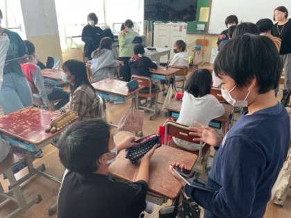 6年生が話す外国語をしっかりと聞いて、クイズに必死になってこたえようとしていました。
