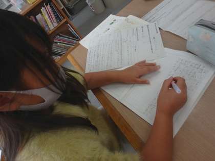 本を読んで分かったことを「すがたをかえる〇〇」の説明文としてまとめています。筆者の説明の工夫を思い出しながら書きました。