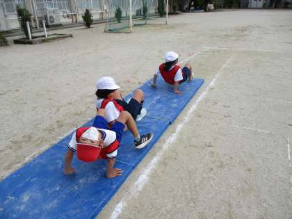 いろいろな場でリーダーのまねっこをしています。とても楽しそうに取り組んでいます。
