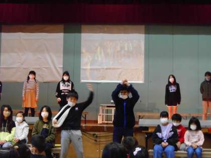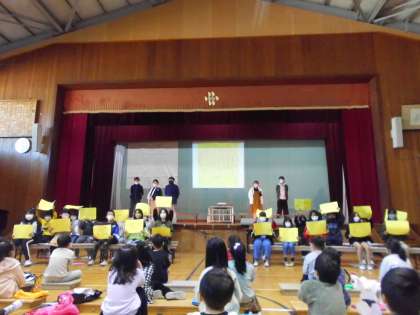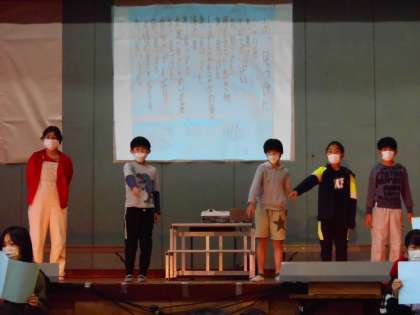 学習発表会、本番!!「4年生の感動する話」では、4月からの学校生活の中で感動したことを詩で紹介していきました。