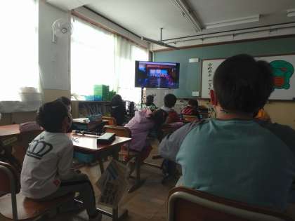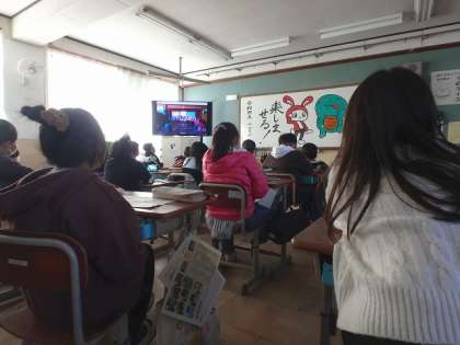 第1部の発表は教室で鑑賞しました。本音を言えば,実際に見たかった!!!ただ,離れた場所でも,発表している人たちのことを考えた聞き方ができていました。