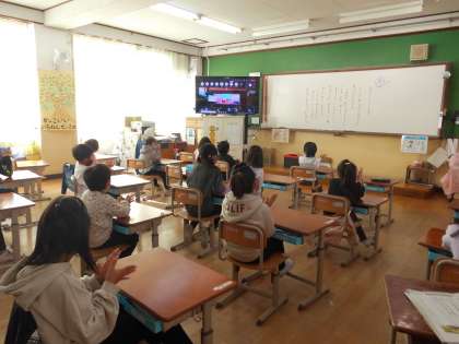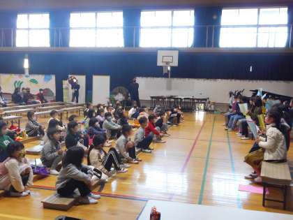体育館と教室で鑑賞しましたが、お兄さん、お姉さんの発表に対して反応する姿は、とてもかわいらしかったです。