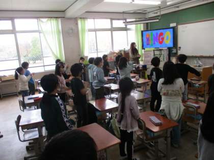 英語の歌を歌って、ALTの先生の自己紹介を聞きました。