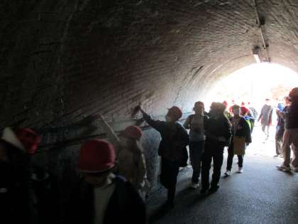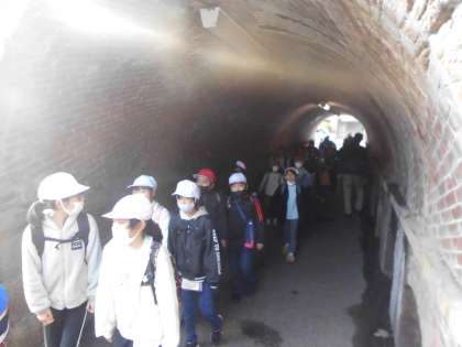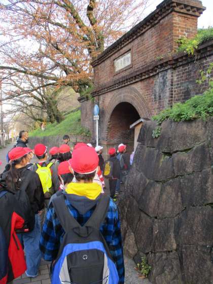 琵琶湖疏水について調べていくために、社会見学にいきました。まずは、「ねじりまんぽ」を見ました。本当にねじってあるようにレンガが並んでいます。