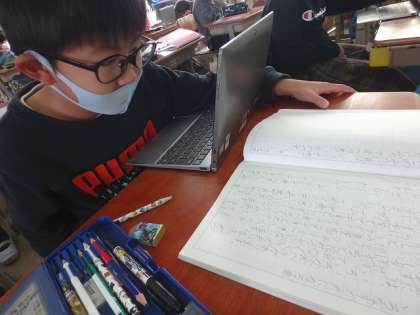 自分が書いた説明文に合う写真を選びました。次の時間に,実際に写真と合わせながら説明文を書いていきます。
