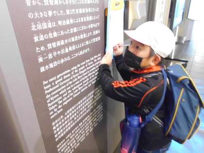 事前の学習では,「車も電気も無い時に大変な工事をするなんて…」と意欲を高めていたので,実物を見るととても驚いていました。