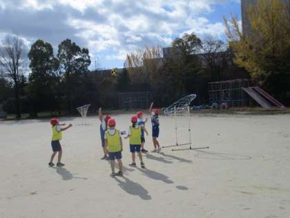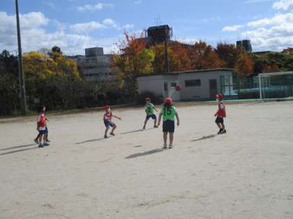ドリブルができないので、パスをつなぐことがとても重要な学習です。