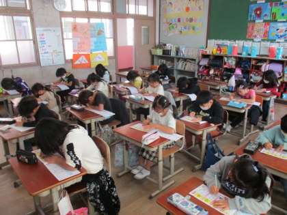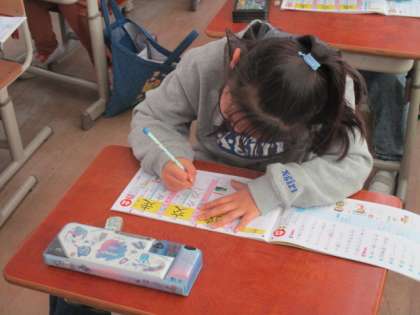新出漢字の学習に熱心に取り組む2年生です。