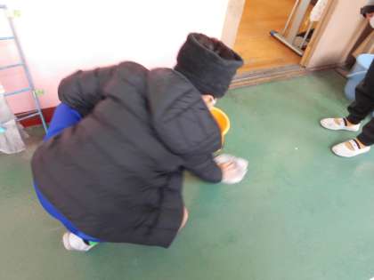 1年生をお迎えに教室へ行ったときのことです。1年生が牛乳バケツにつまづいてしまったところ、さっと6年生がぞうきんを持ってきて廊下を拭いていました。その姿に、最高学年としての自覚を見ることができました。すばらしい!