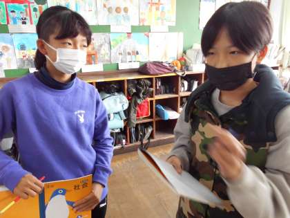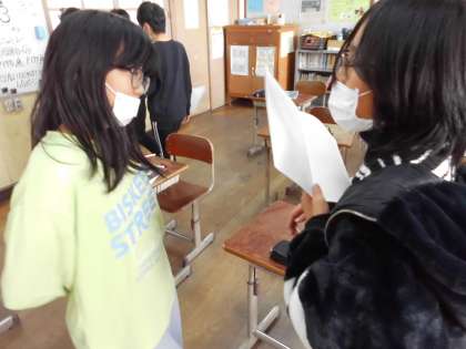 「明治政府の政策についてあなたの支持率は何%?」という問いに対し、根拠を考え、それを友達と話し合いました。