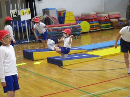 「マットあそび」の学習も回を重ねるごとに、できる技が増えてきました。