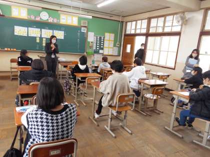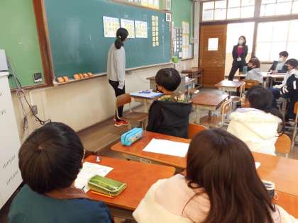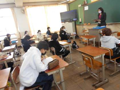 1組は「国語」を、2組は「英語」を中学校の先生から教えていただきました。