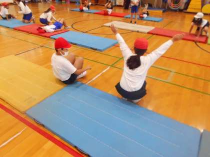 マット運動の学習を始めました。1時間目ということで、タブレットを見ながら自分ができる技を確かめていきました。これから、連続技に挑戦したり、新しい技に挑戦したりして楽しんでいきたいと思います。