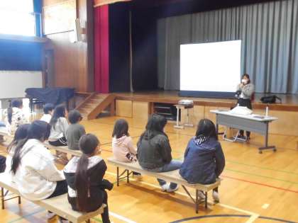 東京パラリンピックに出場した宇津木 美都 選手に来ていただき、「挑戦し続ける理由」をテーマに講演をしていただきました。自己紹介やパラスイミングについてなど、体験談を通してきて考えたことや感じたことを中心に話していただいた内容は、どれも子どもたちの心に突きささる内容ばかりでした。
