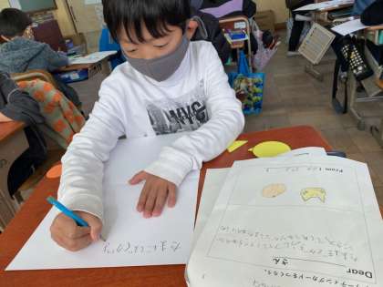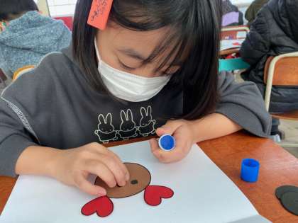 授業の後半では,受け取ったカードを使ってグリーティングカードを作りました。「どうすれば受け取った友達が喜んでくれるか」と考え,よりよいカードにしようとする子どもたちの姿がすてきでした。