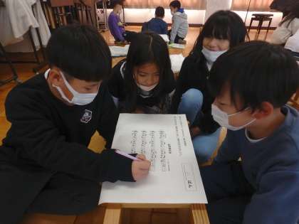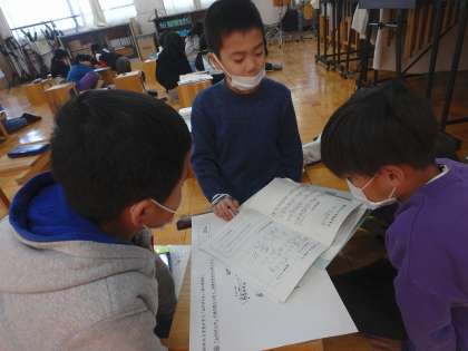 曲の感じを生かしたリコーダーの演奏の仕方を考えました。グループでたくさんの意見を出し合うことができていました。