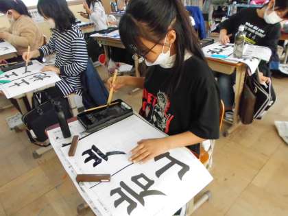 4年 毛筆「土地」「岩山」