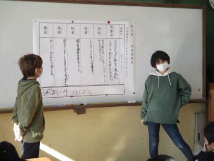 各クラスの代表、各委員会の委員長が集まり、児童会本部の子どもたちが進めています。