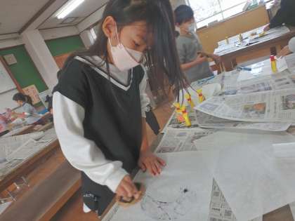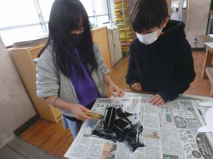 できた版を刷りました。作品がよりよくなるように,「刷り方のポイント」や「版の作り方」について話し合いました。