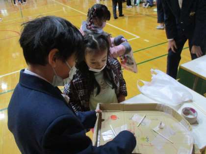 中学生にゲームの仕方について優しく教えて頂きました。