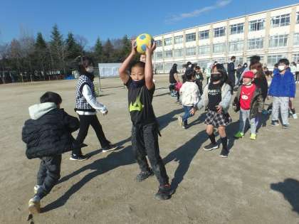 あいあいグループでスポーツチャレンジに取り組みました。今回は「20mボール送り」です。グループで話し合いながら,楽しんでいました。