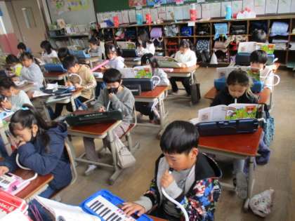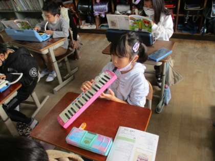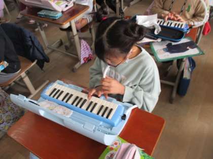 学習の最後は「子ぎつね」の鍵盤ハーモニカを練習しました。