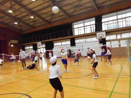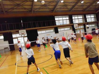 体育では「ソフトバレーボール」の学習が始まりました。今回は、1回目だったので、まずはルールを確認し、試合をしてみました。