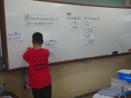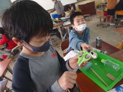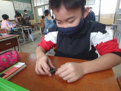 どのようなものが磁石に引きつけられるのかを実験して確かめました。少し予想とは違ったところもあったようで,友達と話し合いながら楽しんで取り組んでいました。