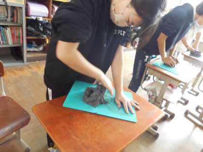 まずは粘土のかたまりをよくこねるところから始めました。なかなか思うようにこねられず、苦戦していた人もたくさんいました。
