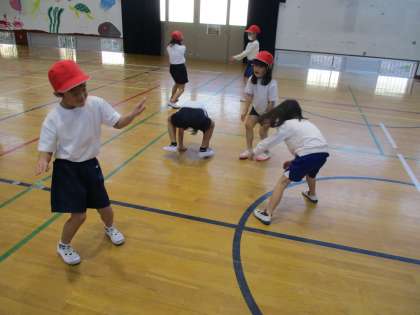 虫になってでは、なりたい虫になって音楽に合わせて踊りました。