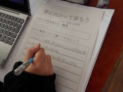 総合的な学習の時間には,いよいよ自分が将来目指したい職業について自分で調べていく学習が始まりました。