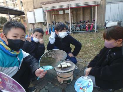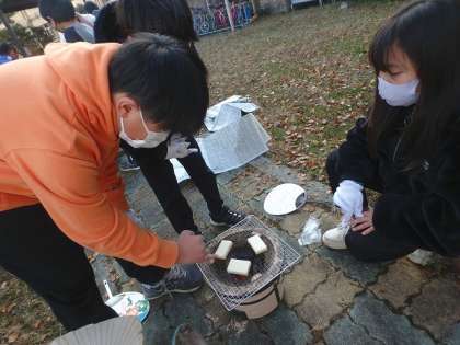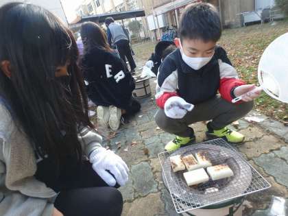 お餅を網の上に載せていきます。うまく焼けるかな?