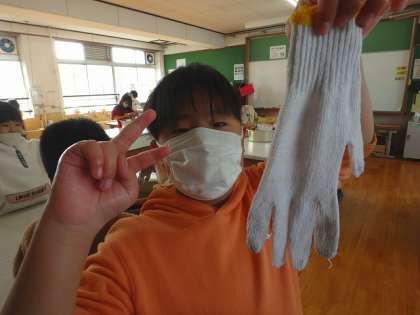 「水が冷たくて大変だ!」と言っていた子どもたちですが,軍手がとてもきれいになり喜んでいました。
