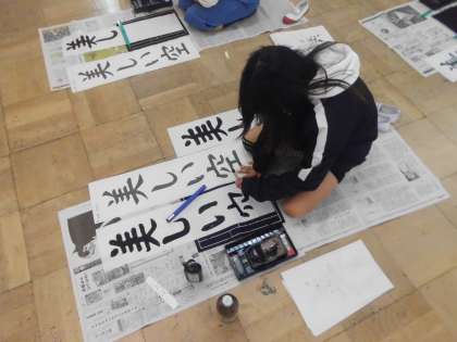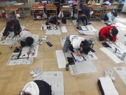 書き初めの授業を行いました。文字の大きさに気を付けながら「美しい空」を書きました。みんな一生懸命取り組みました。