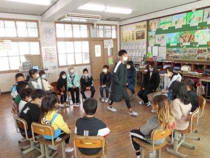 教室のグループは「フルーツバスケット」をしながら,みんなで楽しみました。