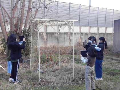 理科では、1年を通して観察している植物の様子を写真で記録しに行きました。春・夏・秋・冬と毎回記録をしてきましたが、どんな変化があったのでしょうか。