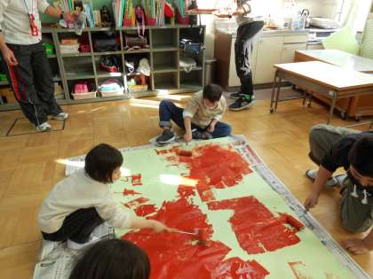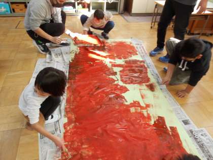 「小さな巨匠展」の作品の制作過程を紹介したり、合同で作品を作ったりしました。