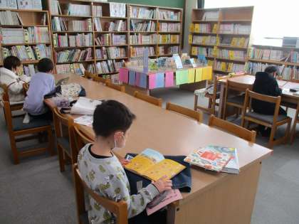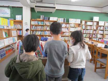 毎週金曜日はブックレンタルデーです。図書館が好きな子どもたち、楽しい本を選んでいました。