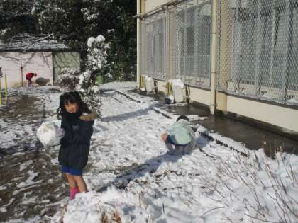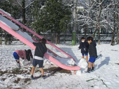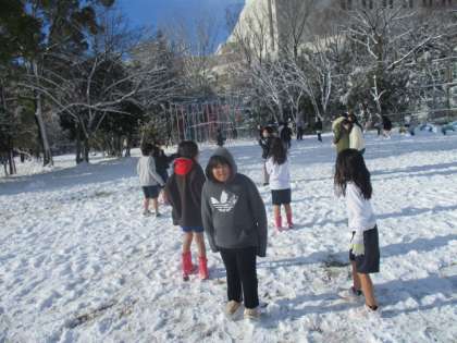 昨日から降り続いた雪が運動場や中庭にもたくさん積もっていました。