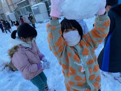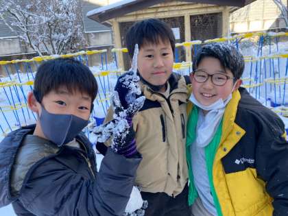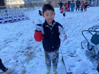 朝から校庭は銀世界!こんな機会はしばらくないぞ…とみんなで中庭に出ることに!子どもたちとっても楽しんでいました。